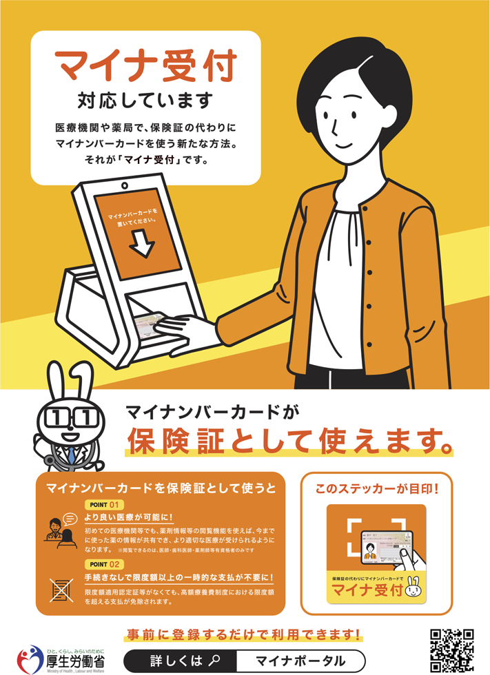 尚、医療証をお持ちの方はマイナ受付後、医療証を受付にご提示ください。